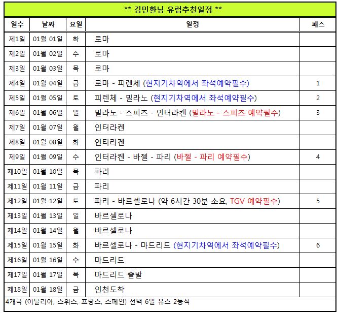 일정확정해주시면 유레일 패스 소지자 좌석예약필수구간에 대해 자세하게 안내드리겠습니다~!