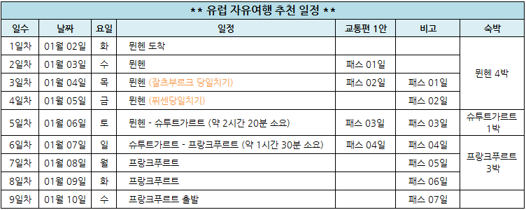 - 유레일패스 가격은 당일 환율에 따라 달라지기 때문에 입금기한이 짧으며,
