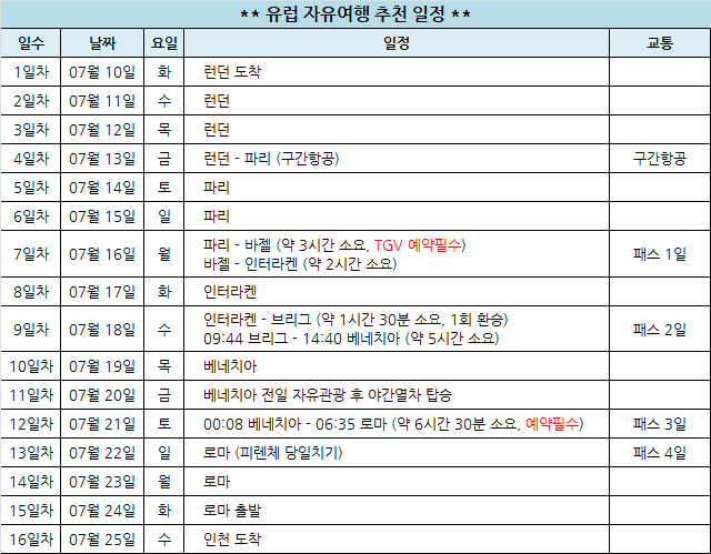 만약 3개국 내에서 여행일정이 추가되시면 패스 날짜를 추가해주시면 됩니다!