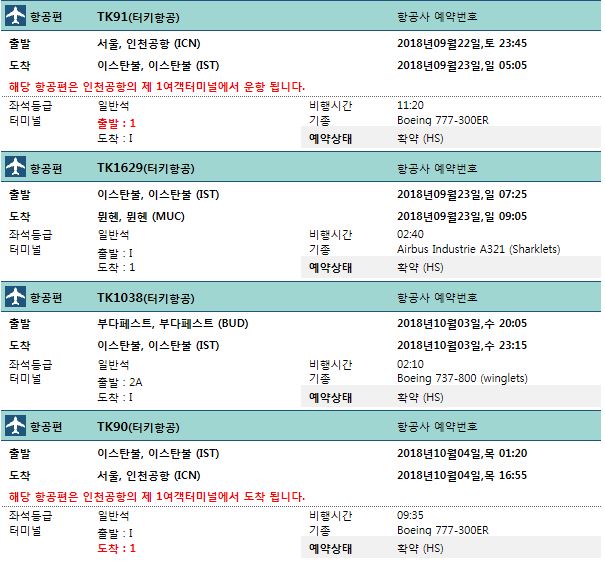 문의주신 구간에 대한 부분에 대해 터키항공과 저렴한 에미레이트 항공 안내드립니다~