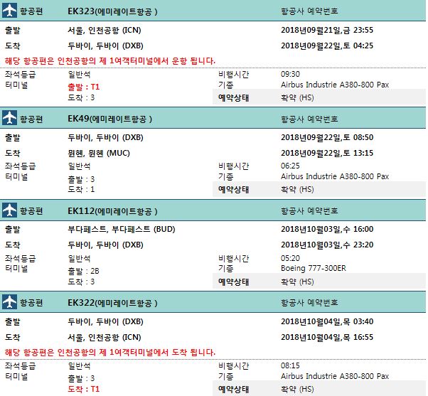▶ 1인 에미레이트 항공 요금 (TAX 포함) : 122만원 부터 ~ (실시간)