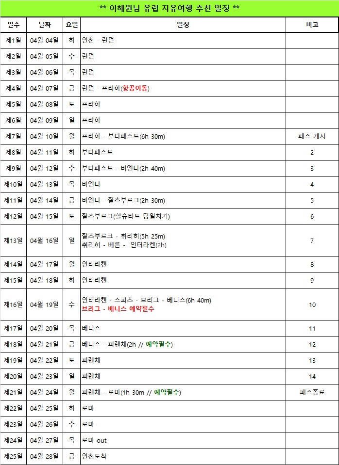 제가 일정표에 패스사용날, 패스예약필수구간 다 체크해드렸으니 확인해주세용!^^